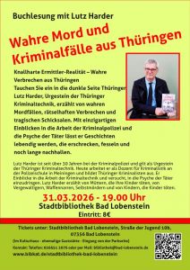 Lutz Harder berichtet über „Wahre Mord- und Kriminalfälle aus Thüringen“ am 31.03.2026, 19.00 Uhr in der Stadtbibliothek Bad Lobenstein