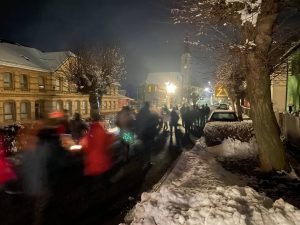 Am Freitagabend trafen sich rund 50 Bürger in Blankenberg, um gegen die Corona-Maßnahmen zu demonstrieren. Vom Haus der Vereine aus starteten sie einen Spaziergang durch Blankenberg, um anschließend am Brunnen