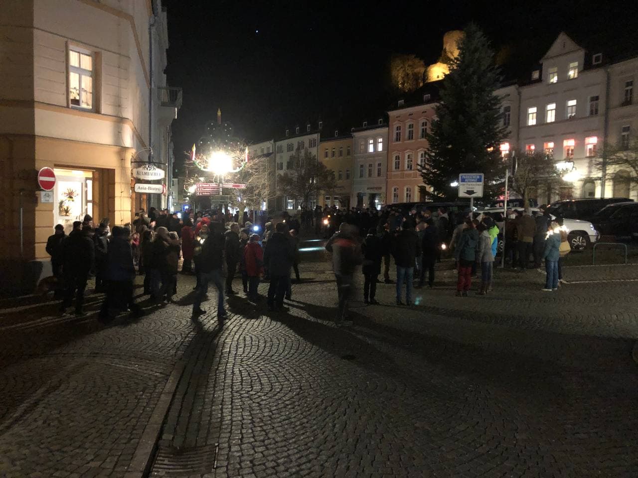 Bei nasskaltem Winterwetter versammelten sich in Bad Lobenstein auch diesen Montagabend knapp 200 Bürger, um gegen die Corona-Politik der Bundes- und Landesregierung zu demonstrieren. Wie schon die letzten Wochen, sicherte auch heute die Polizei wieder den Verkehr rund um den unangemeldeten Protestzug ab. Abermals verlief alles friedlich und ohne nennenswerte Vorkommnisse ab.