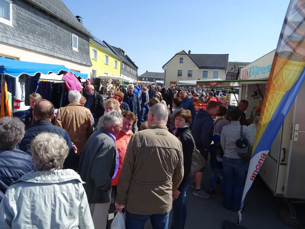 Wahrscheinlich gibt es den Markt aber schon viel, viel länger. Überlieferungen zufolge fand der Markt immer statt, auch in den Zeiten der Weltkriege und in den schwierigen Jahren danach. In diesen Jahren begaben sich aber oft nur wenige Händler in den kleinen Ort im Oberland. So wurden in diesen früheren Jahren landwirtschaftliche Produkte und Vieh gehandelt. Eben das, was zum täglichen Leben gebraucht wurde. Mit zunehmender Motorisierung der Bevölkerung kamen Handelsleute von weiter her und boten auch andere Waren an. Der Markt wurde bekannter und beliebter. Das Publikumsinteresse nahm zu. In den 50er, 60er und 70er Jahren gab es Artikel zu kaufen, die in den staatlichen Handelsorganisationen nicht oder nicht immer im Angebot waren. Raritäten und Renner waren Korbwaren, der „Topfmann“ war immer stark nachgefragt, es gab Süßigkeiten für die Kinder, ein bisschen Schmuck für die Frauen. Die landwirtschaftlichen Wurzeln wurden vom „Rechenmann“ und vom „Leiternmann“ hochgehalten. In dieser Zeit entstanden skurile Situationen: So waren die Händler – viele kamen aus Plauen und Umgebung – zwar angesagt, aber noch nicht anwesend. Die Besucher stellten sich in Erwartung derer an den noch leeren Buden an. Manchmal kam aber der erwartete Händler eben auch nicht… Geduld war gefragt. Es waren andere Zeiten. Die Älteren werden sich erinnern.