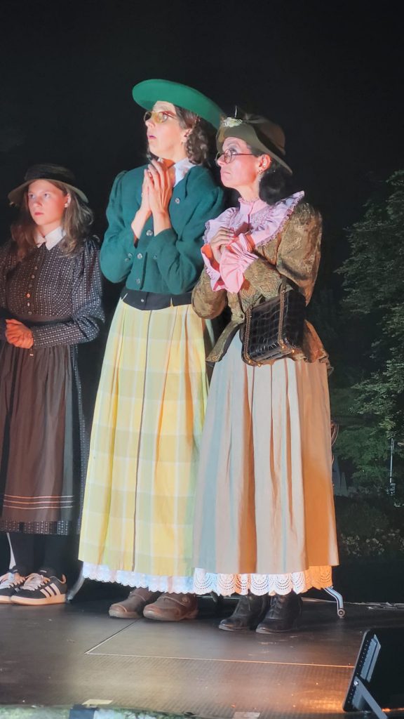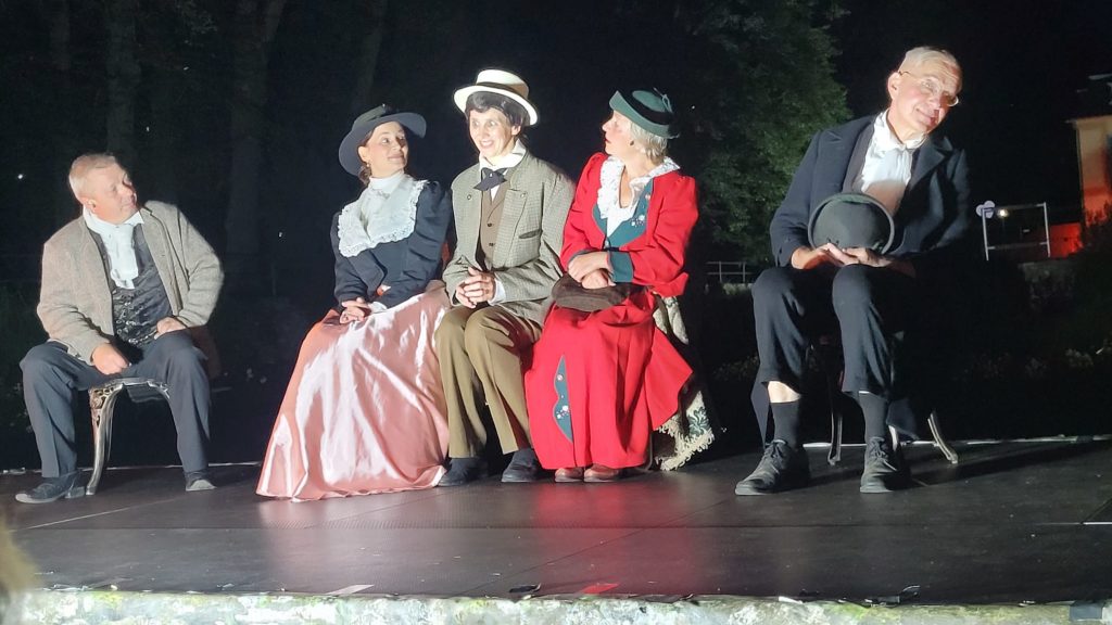 Meine Begeisterung für die Darsteller hat an diesem Abend noch eine Steigerung erhalten. Wenn man bedenkt, dass fast alle Mitwirkenden keine schauspielerische Ausbildung haben, alles in ihrer Freizeit einstudieren und zur Freude der Zuschauer „die Bretter, die die Welt bedeuten“ leichtfüßig und ohne spürbares Lampenfieber betreten, dann kann man nur sagen : „Chapeau bas“! Ich könnte mir so viel Text niemals merken.