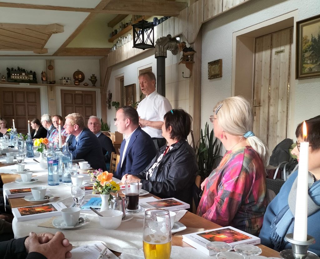 Herr Siegmund, der für die Entstehung des Werkes „den Hut auf hat“, sprach zu Beginn des Treffens über die Details zu Organisation, Herstellung und auch die Schwierigkeiten, die es dabei gab. Aus seinen Worten konnte ich heraus hören, dass er mit Herz und Seele dabei ist und sich wünscht, dass es auch in den nächsten Jahren ein Heimatjahrbuch vom Saale-Orla-Kreis geben wird.