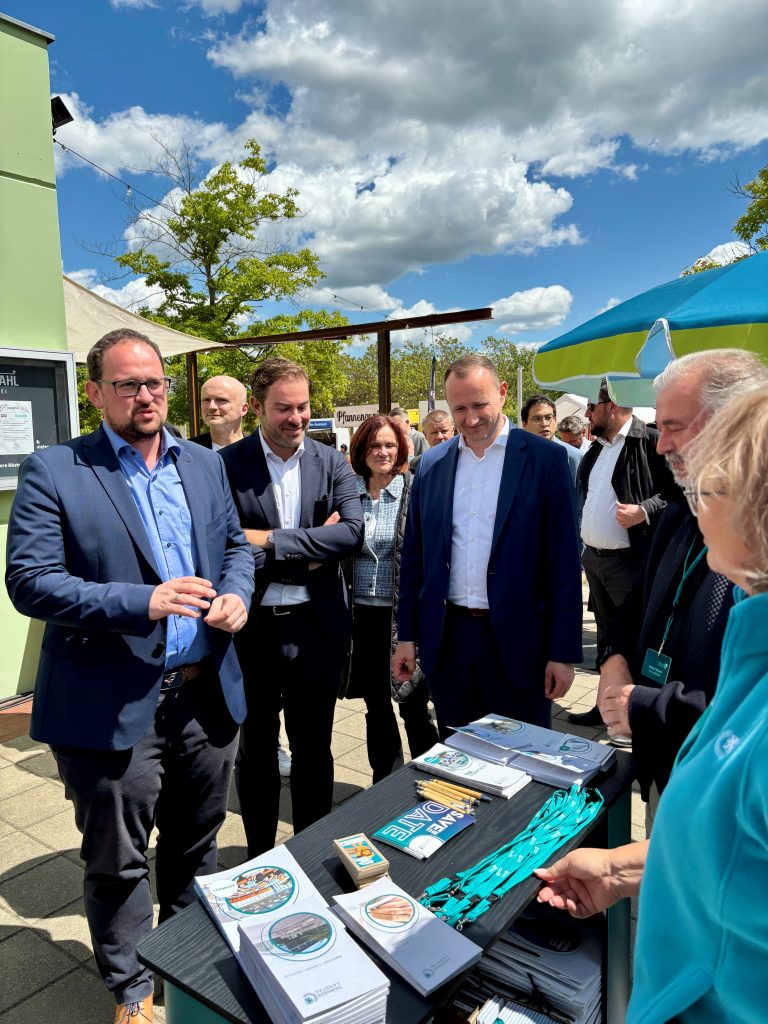 Bildunterschrift TLT_Saale Orla Schau 4: Im vergangenen Jahr eröffnete mit Dr. Thadäus König (links) – hier während des gemeinsamen Messerundgangs mit Landrat Christian Herrgott (3. von links) – erstmals Präsident des Thüringer Landtags die Saale-Orla-Schau.