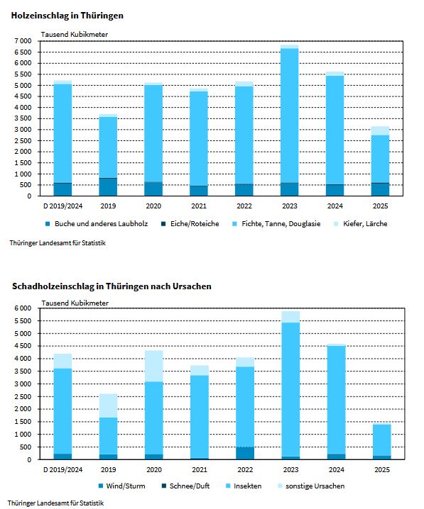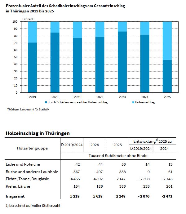 (-40 Prozent) weniger Holz eingeschlagen.